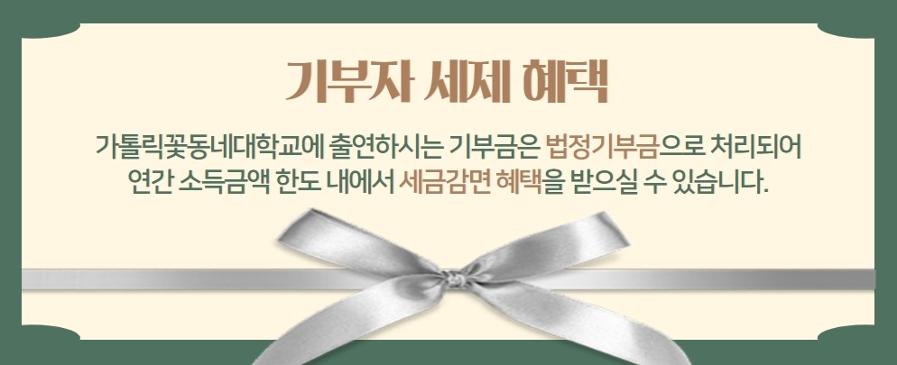 - 연말정산 또는 종합소득세 신고 시 연간 소득금액한도 내에서 전액 소득공제대상이 되며 기부금액의 15%를 세액공제