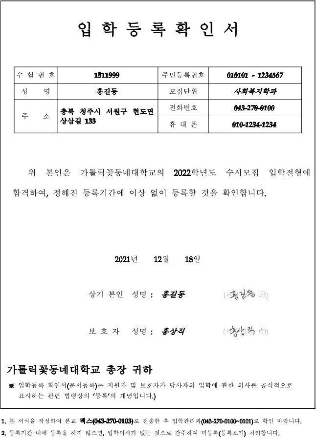 가톨릭꽃동네대학교 수시모집에 지원해 주신 지원자 여러분께 진심으로 감사드립니다.