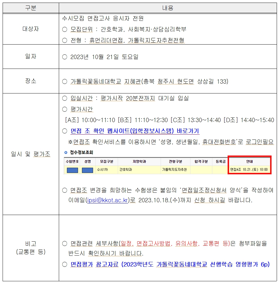 ※면접조 확인서비스를 이용하시면 ‘성명, 생년월일, 휴대전화번호’로 로그인필요